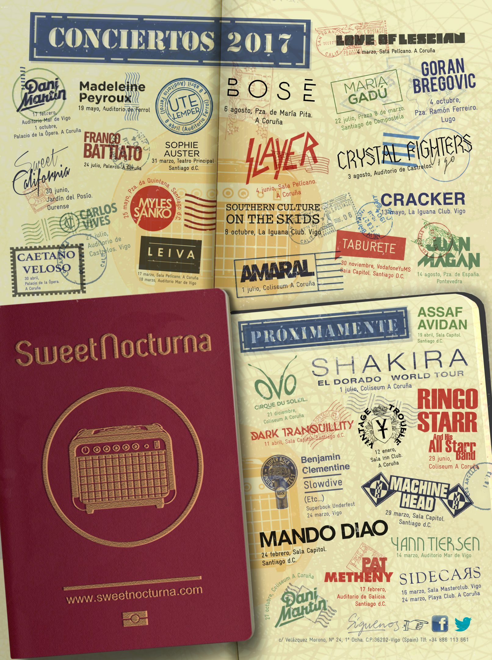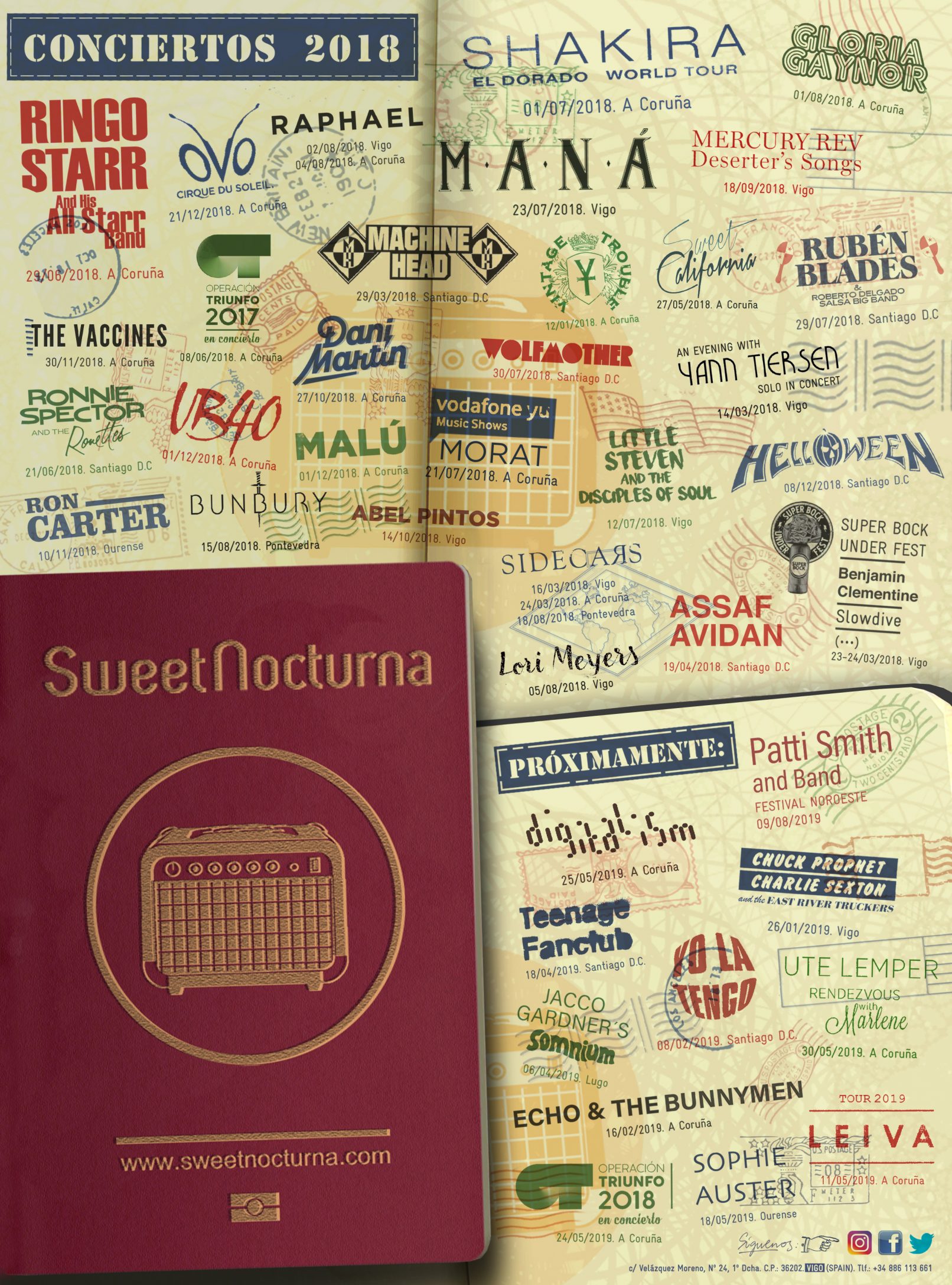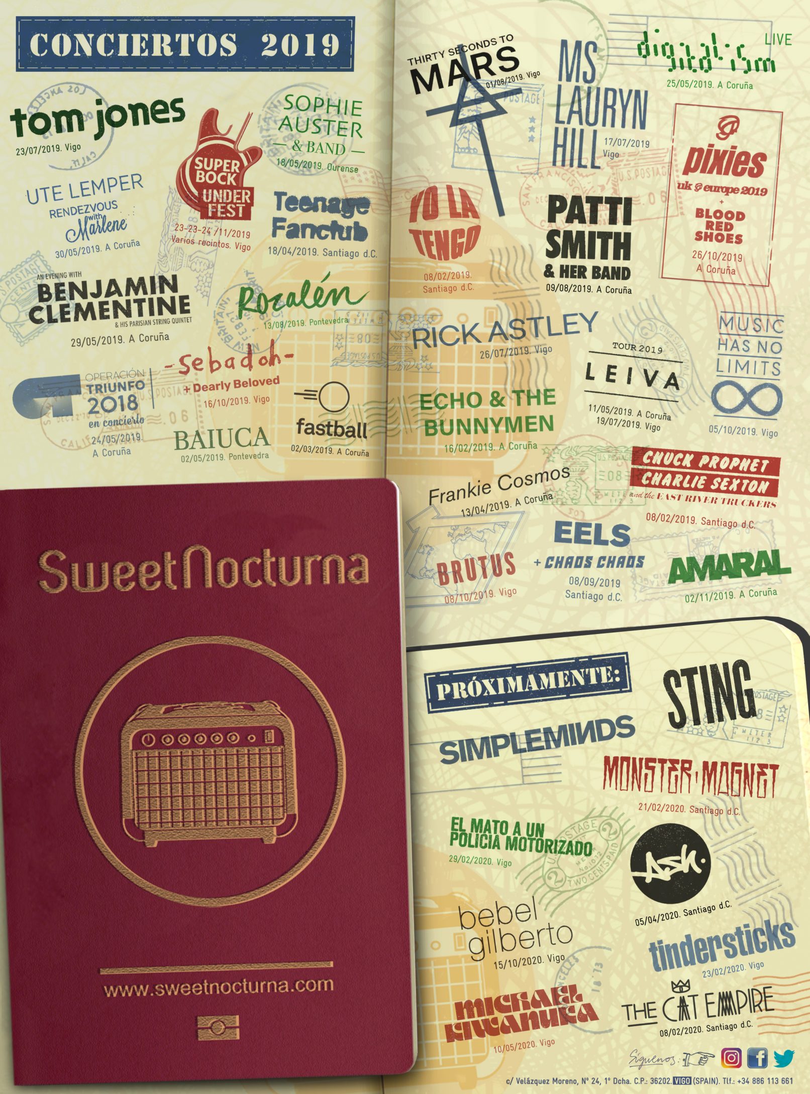 El encargo para el anuncio de "Sweet Nocturna" en el anuario APM (Asociación de Promotores Musicales) partía de la necesidad de mantener el formato existente. Este diseño previo de la empresa reproducía una gráfica propia de un pasaporte. La idea era realizarlo de forma que su nuevo diseño resultase más formal. Para ello se retocaron todos los elementos de la imagen, como pasaporte y fondos, y se rediseñaron los sellos de forma que los logos de los artistas fuesen los relacionados con la gira actual y la claridad del mensaje aumentase. A continuación se muestra el gráfico comparativo junto a los diseños de varias temporadas.