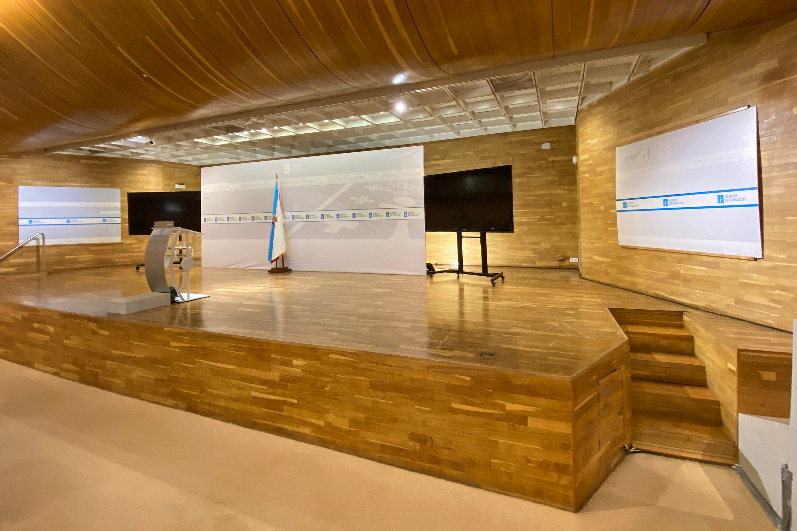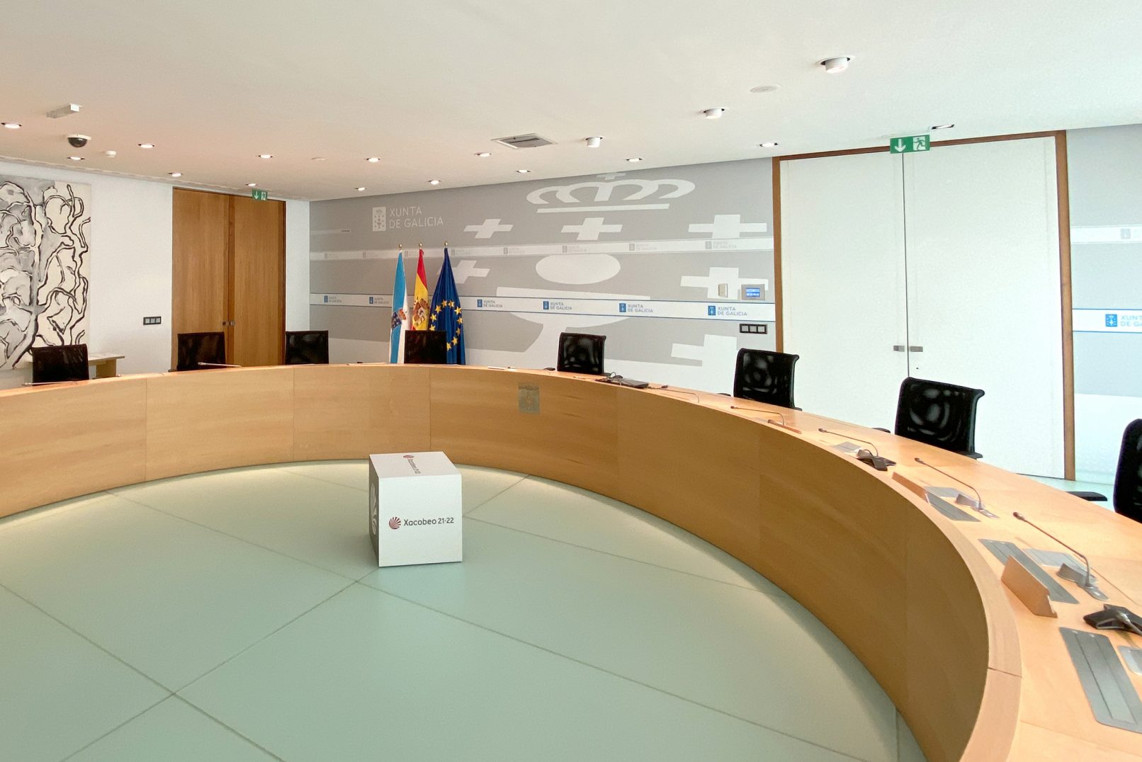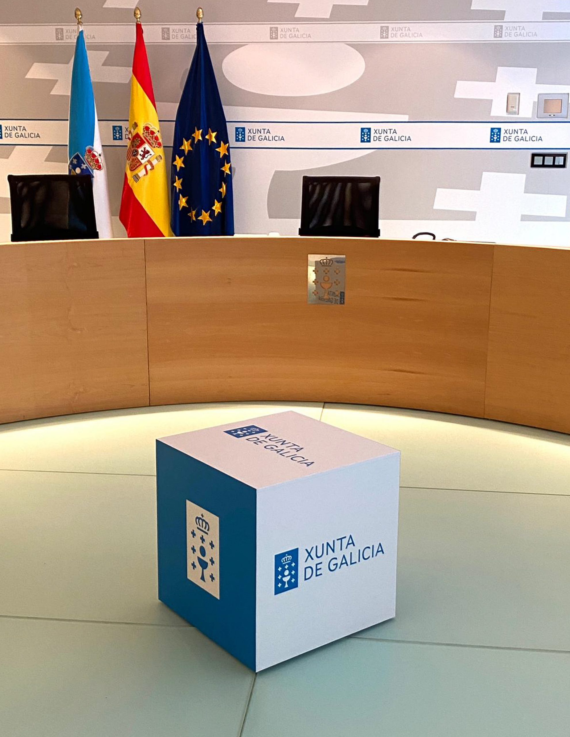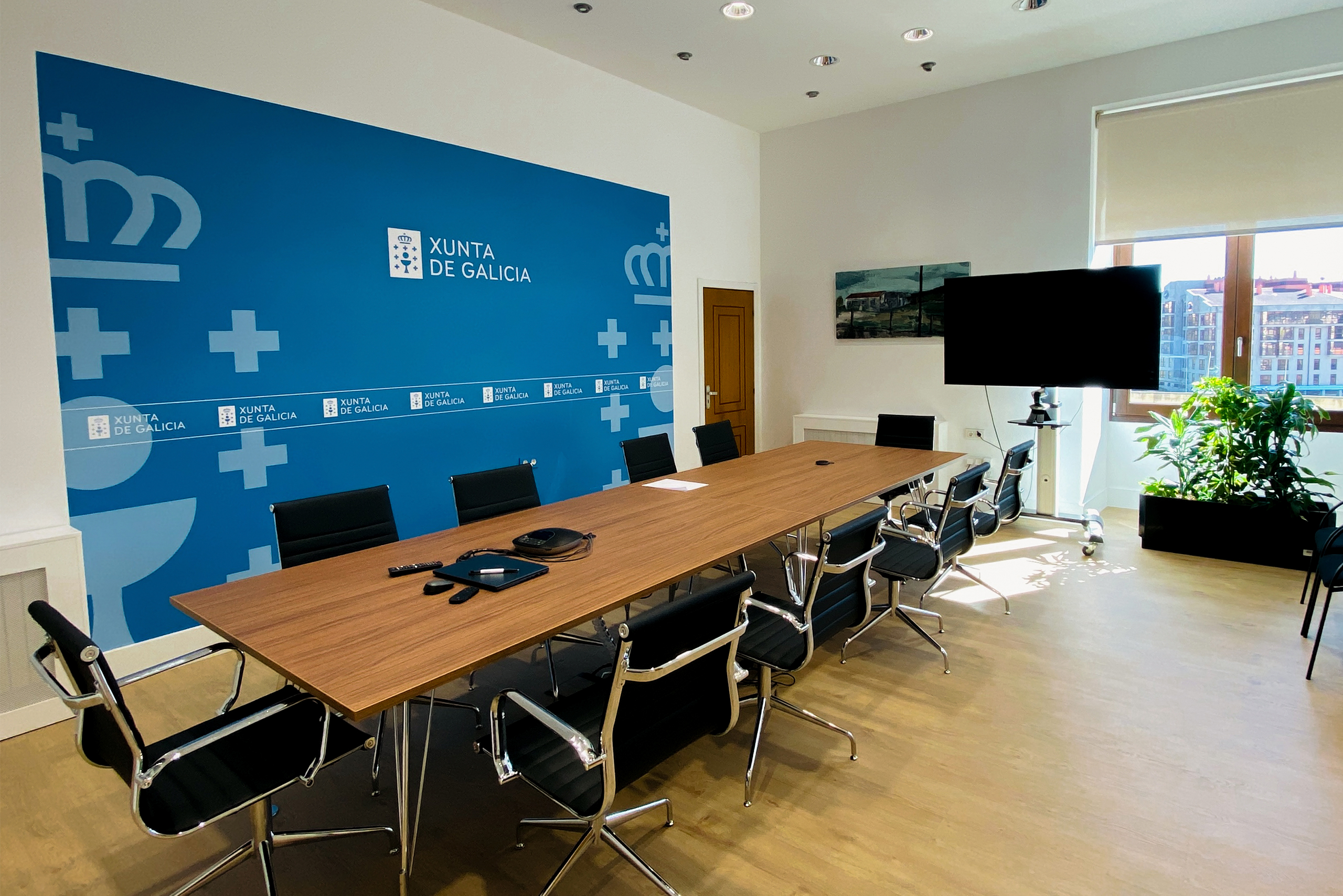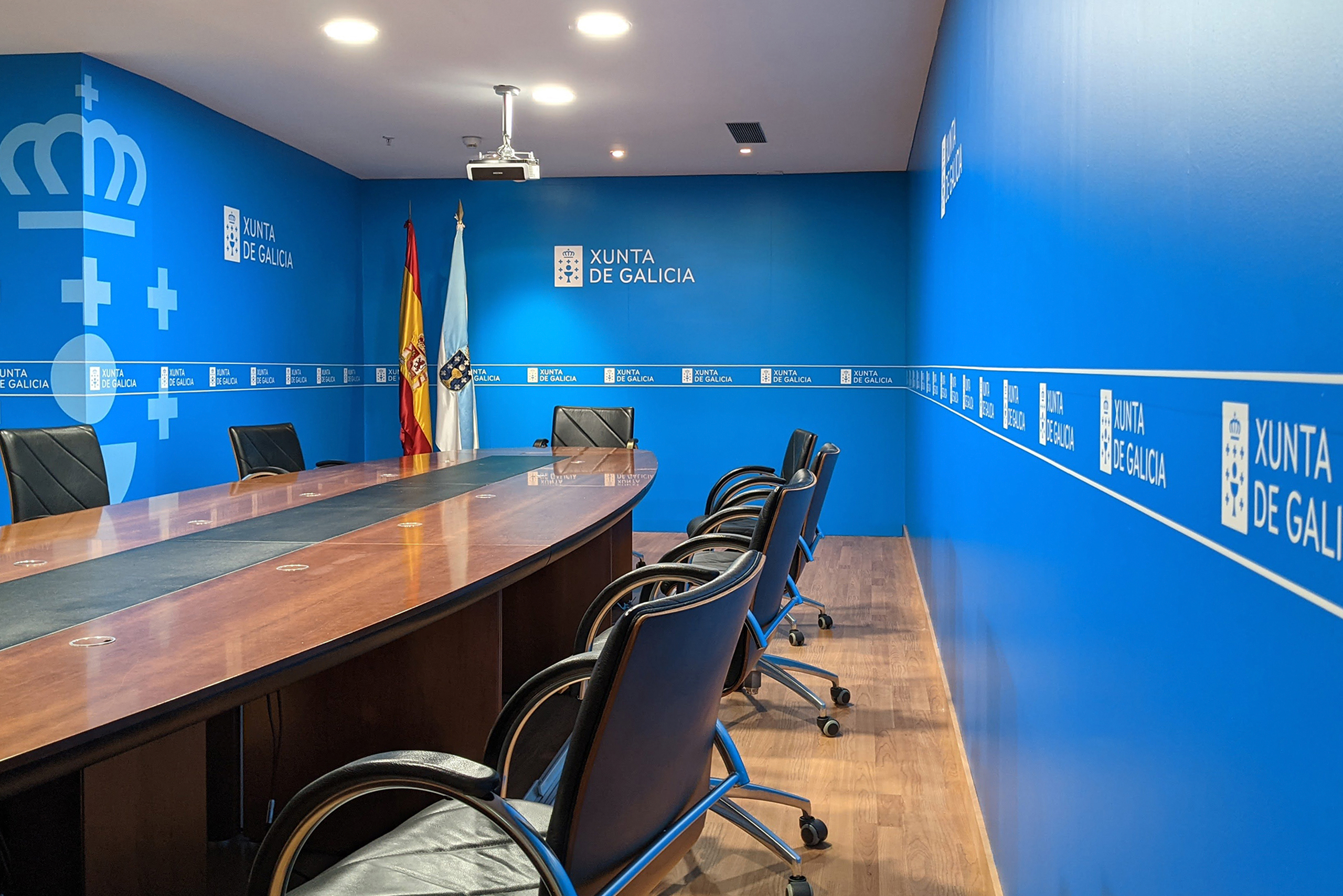 Dentro de este marco, desarrollo los gráficos institucionales para salas de prensa y salas de juntas de distintas consellerías de la Xunta de Galicia, entre ellas: